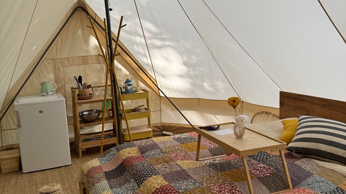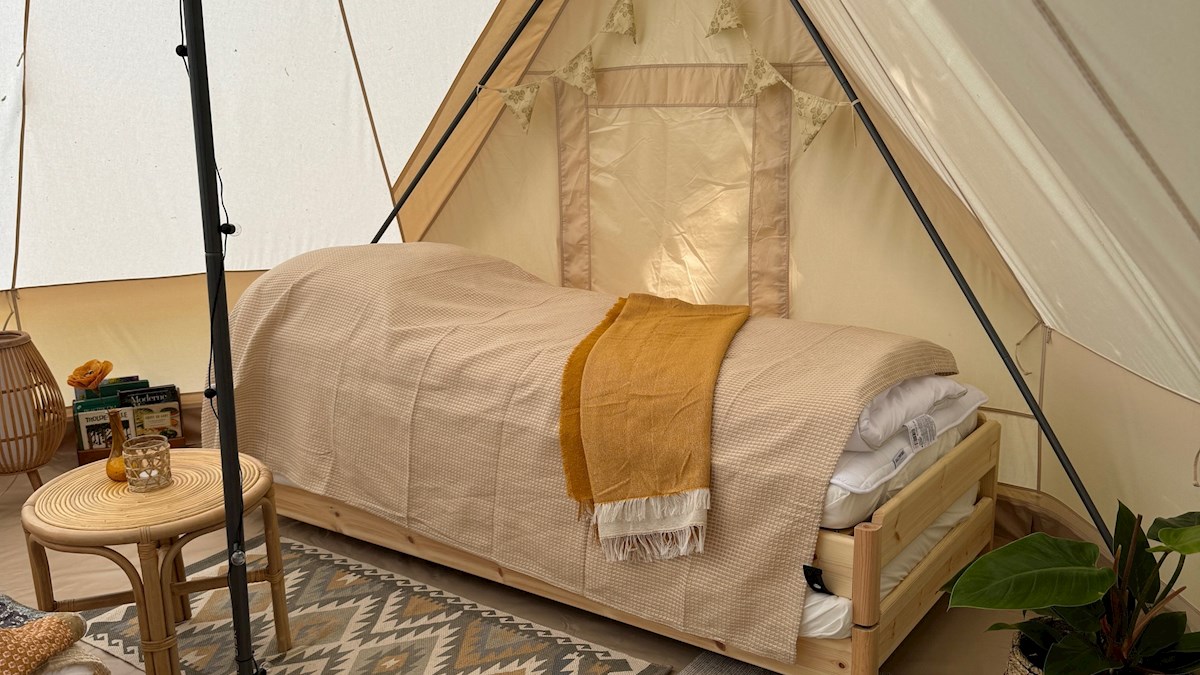 • Der er en 10-liters vanddunk i teltet – kan fyldes ved nærliggende vandpost