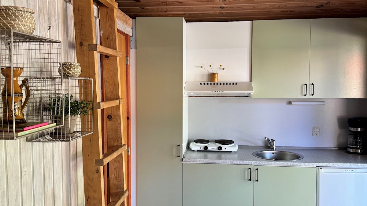 • Køkken med håndvask, køleskab, kogeplader, elkedel og kaffemaskine (campingovn kan ved behov lånes i receptionen)