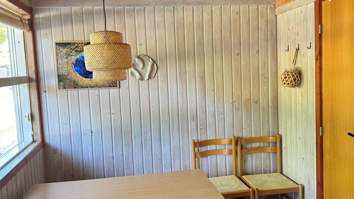 Hytte på 20 kvadratmeter med to værelser - uden bad og toilet. +'et er et udtryk for, at hytten er indrettet med et ekstra soveværelse. Der er plads til op til seks personer.